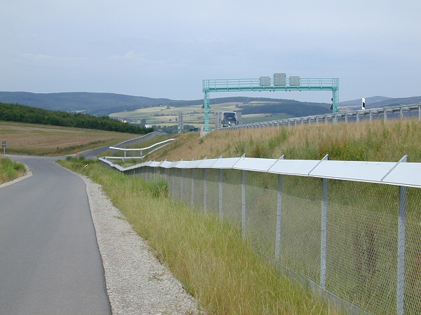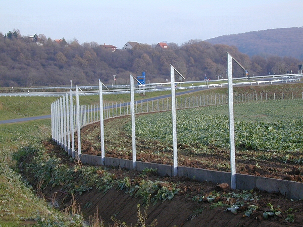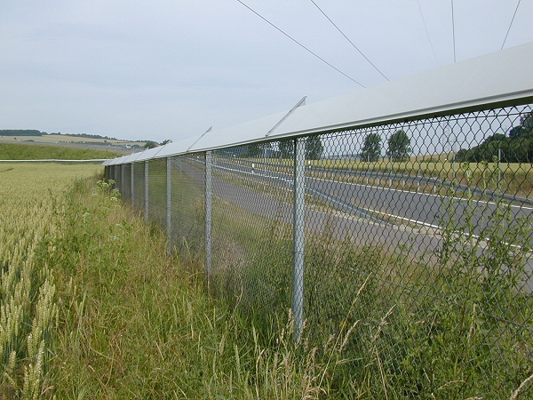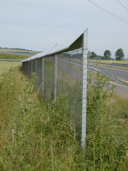 21. Dezember 2005: Der von uns geplante und "bauüberwachte" Wildkatzen-Schutzzaun an der BAB A 38 ("Südharzautobahn") im niedersächsischen Abschnitt nimmt langsam Gestalt an.