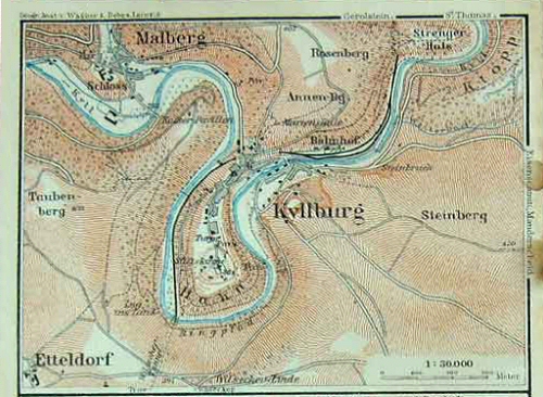 Schade, dass damals offenbar niemand aus meiner Familie "systematisch" fotografiert hat, woran ich noch heute gute Erinnerungen habe, z.B. wie wir als Kinder die Breuer'schen Kühe mit über den Hof getrieben haben (inklusive den für mich Stadtkind ersten Erfahrungen, dass diese Tiere nicht nur Milch, sondern auch Fladen produzieren), an den Holzhack-Platz neben den Ställen, wo wir das erste Mal mit Axt und Beil hantieren durften [durften wir ?], an das geheimnisvolle und sehr baufällige Innere des "Alten Hauses", an den "Eisernen Garten" in voller Blüte (mitten drin "Tante Elisabeth" in Aktion), an "Tante Mieze", ihr "Geseeegnete Maaahlzeit" zelebrierend, an das imponierende Riesenbild mit der Jagdszene (Bären und Hunde), an die Badestelle an der Kyll, an Luftmatratzen-Fahrten kyllabwärts, etc., etc. So muss ich wohl oder übel mit dem auskommen, was ich im Kopf bewahrt und in Alben und Kästen gefunden habe ...