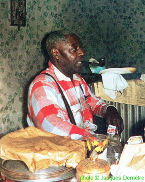 Kokomo Arnold in his home, 4413 South Calumet Avenue in Chicago, IL, September 1959source: Les Génies du Blues, Volume 4.- Paris (Edition Atlas) 1993, p. 81;photographer: Jacques Demêtre