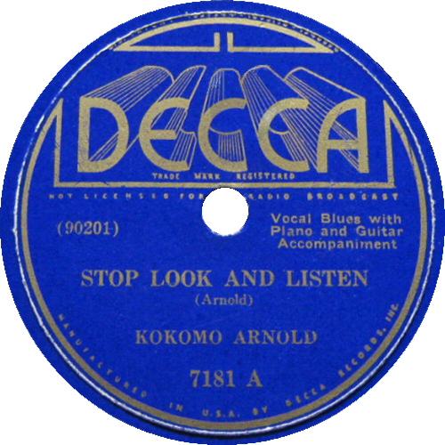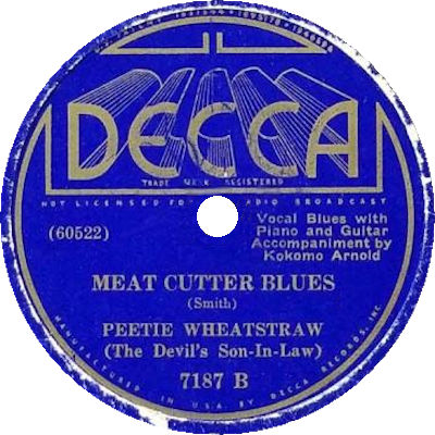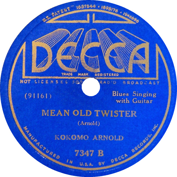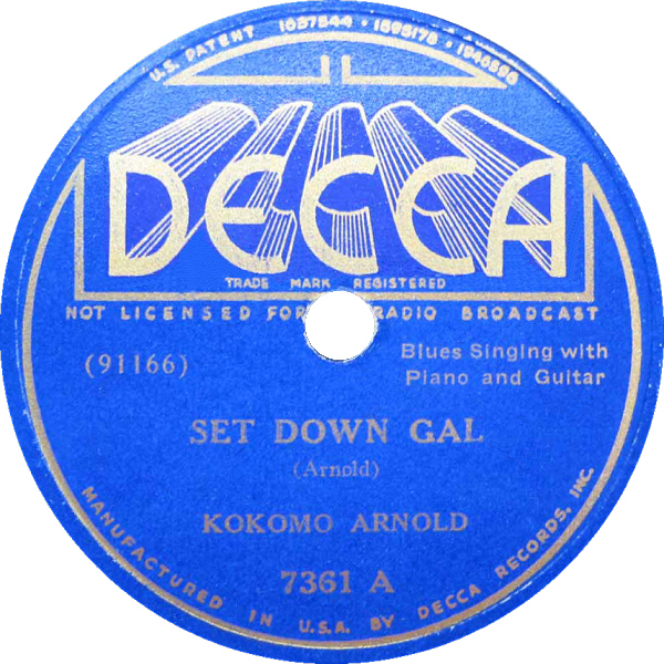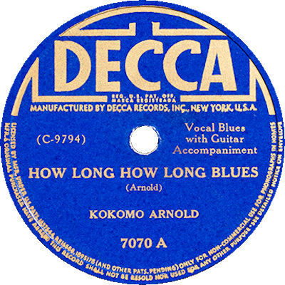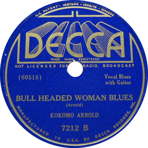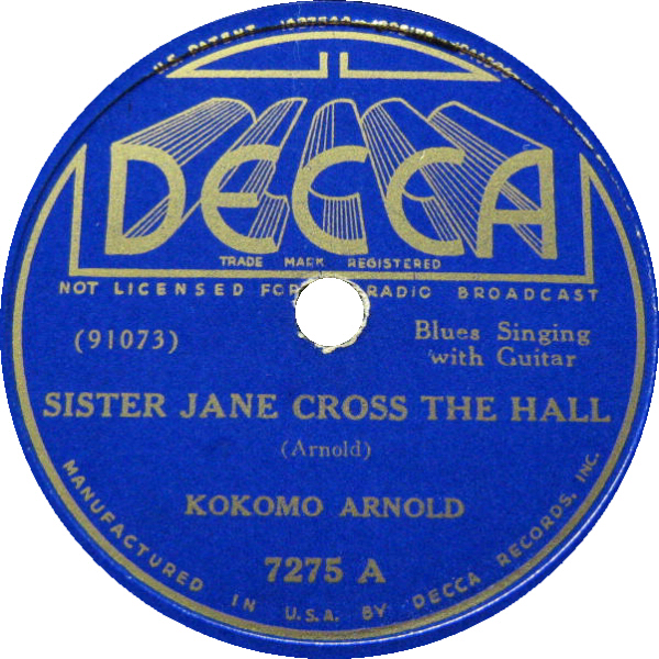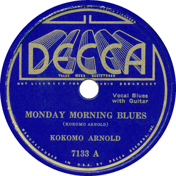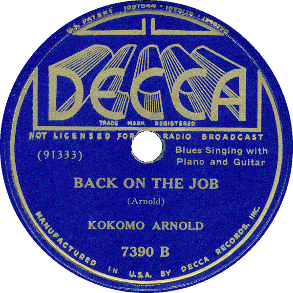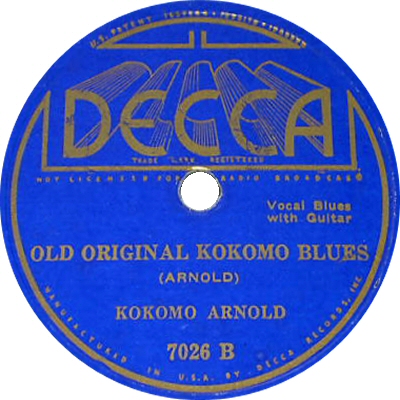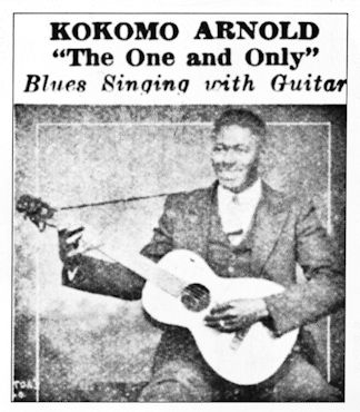 Kokomo Arnold 1930sfrom 193? Decca Records flyersource: Yazoo CD 2067/68 "Times Ain't Like They Used To Be" Vol. 7/8 Kokomo Arnold at Gallo's 29 ClubCorner 47th and Dearborn Streets in Chicago, IL, July 1938(Chicago Defender ad, 2nd July 1938)source: Leaflet accompanying Agram AB 2015photoshop enhanced by Stefan Wirz Kokomo Arnold, 1945(photo that was given to Demêtre & Chauvard by Arnold when they visited him in September 1959)source: Jacques Demêtre & Marcel Chauvard: Voyage au Pays du Blues.- Levallois-Perret (CLARB-Soul Bag) 1994, p. 154 Kokomo Arnold starring at Bob Mays & Bob Simmons' Picadilly Inn2652 Indiana Avenue, Chicago, IL, June 1946(Chicago Defender ad, 15th June 1946, "Thornton Photo")source: Leaflet accompanying Agram AB 2015 Kokomo Arnold relaxes in a Chicago clubThis photo in 1963 has been given by Kokomo Arnold to George Mitchell, who posted it at facebook; a bit photoshop cleaned up by Stefan WirzA cropped version of the photo has been published in Paul Oliver: Die Story des Blues.- Hamburg 1978, p. 192;photographer's name not given Kokomo Arnold in his home, 4413 South Calumet Avenue in Chicago, IL, September 1959source: Les Génies du Blues, Volume 4.- Paris (Edition Atlas) 1993, p. 81;photographer: Jacques Demêtre Kokomo Arnold in his home in Chicago, September 1959source: Front cover of EMP Musique CD 59302; photographer: Jacques Demêtre Kokomo Arnold in his home (4413 South Calumet Avenue) in Chicago, IL, September 1959source of photo on the left: Philippe Bas-Rabérin (ed.): Blues - Les Incontournables.- Paris (Éditions Filipacchi) 1994, p. 13source of photo on the right: Jacques Demêtre & Marcel Chauvard: Voyage au Pays du Blues.- Levallois-Perret (CLARB-Soul Bag) 1994, p. 146photographer: Jacques Demêtre Kokomo Arnold and Jacques Demêtre in Arnold's home (4413 South Calumet Avenue) in Chicago, IL, September 1959source: Steve Cushing: Pioneers of the Blues Revival.- Urbana, Chicago, and Springfield (University of Illinois Press) 2014, p. 249photographer: Jacques Demêtre / Soul Bag Archive Kokomo Arnold's headstone, put up by André Cochepin Mingarroat Burr Oak Cemetery (4400 W. 127th Street, Alsip, Illinois), section Acacia Lawn, lot 323, grave 5source: http://blindman.fr.yuku.com/topic/26871#.WAINKfmLSUkphotographer: Jocelyn Richez Leon Terjanian: "Kokomo Arnold"Blues Link No. 2 (Oct/Nov 1973), p. 27-30 The article above is 'published' here for private research only. While of historical interest, it may contain factual errors only revealed by later research. Be advised that more recent reference works should be consulted regarding factual points such as spelling of names, dates of birth, dates of recordings.
