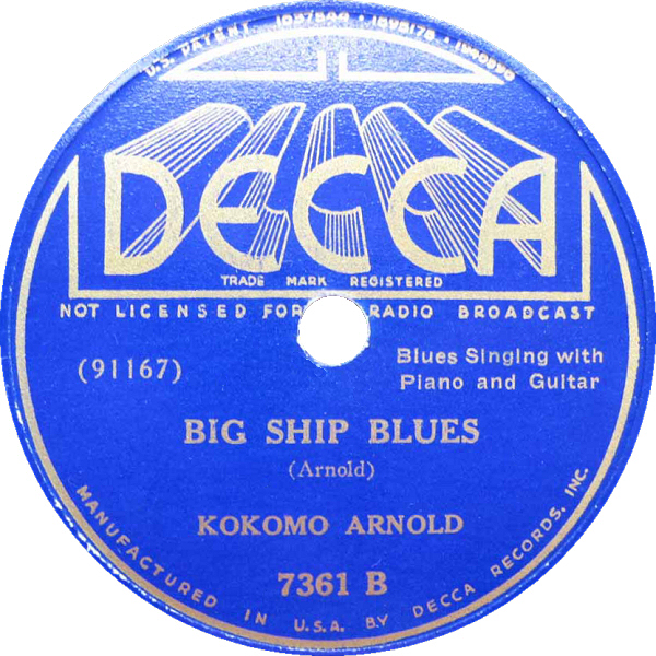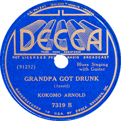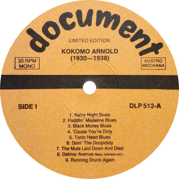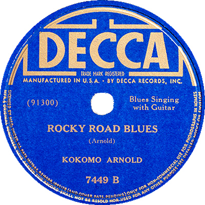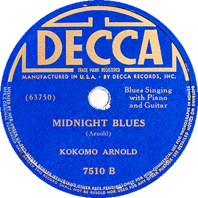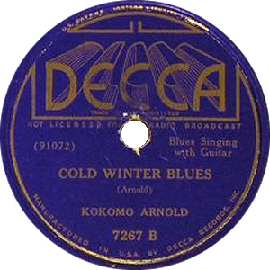 Kokomo Arnold, 1945(photo that was given to Demêtre & Chauvard by Arnold when they visited him in September 1959)source: Jacques Demêtre & Marcel Chauvard: Voyage au Pays du Blues.- Levallois-Perret (CLARB-Soul Bag) 1994, p. 154 Kokomo Arnold starring at Bob Mays & Bob Simmons' Picadilly Inn2652 Indiana Avenue, Chicago, IL, June 1946(Chicago Defender ad, 15th June 1946, "Thornton Photo")source: Leaflet accompanying Agram AB 2015 Kokomo Arnold relaxes in a Chicago clubThis photo in 1963 has been given by Kokomo Arnold to George Mitchell, who posted it at facebook; a bit photoshop cleaned up by Stefan WirzA cropped version of the photo has been published in Paul Oliver: Die Story des Blues.- Hamburg 1978, p. 192;photographer's name not given Kokomo Arnold in his home, 4413 South Calumet Avenue in Chicago, IL, September 1959source: Les Génies du Blues, Volume 4.- Paris (Edition Atlas) 1993, p. 81;photographer: Jacques Demêtre Kokomo Arnold in his home in Chicago, September 1959source: Front cover of EMP Musique CD 59302; photographer: Jacques Demêtre Kokomo Arnold in his home (4413 South Calumet Avenue) in Chicago, IL, September 1959source of photo on the left: Philippe Bas-Rabérin (ed.): Blues - Les Incontournables.- Paris (Éditions Filipacchi) 1994, p. 13source of photo on the right: Jacques Demêtre & Marcel Chauvard: Voyage au Pays du Blues.- Levallois-Perret (CLARB-Soul Bag) 1994, p. 146photographer: Jacques Demêtre Kokomo Arnold and Jacques Demêtre in Arnold's home (4413 South Calumet Avenue) in Chicago, IL, September 1959source: Steve Cushing: Pioneers of the Blues Revival.- Urbana, Chicago, and Springfield (University of Illinois Press) 2014, p. 249photographer: Jacques Demêtre / Soul Bag Archive Kokomo Arnold's headstone, put up by André Cochepin Mingarroat Burr Oak Cemetery (4400 W. 127th Street, Alsip, Illinois), section Acacia Lawn, lot 323, grave 5source: http://blindman.fr.yuku.com/topic/26871#.WAINKfmLSUkphotographer: Jocelyn Richez Leon Terjanian: "Kokomo Arnold"Blues Link No. 2 (Oct/Nov 1973), p. 27-30 The article above is 'published' here for private research only. While of historical interest, it may contain factual errors only revealed by later research. Be advised that more recent reference works should be consulted regarding factual points such as spelling of names, dates of birth, dates of recordings.
