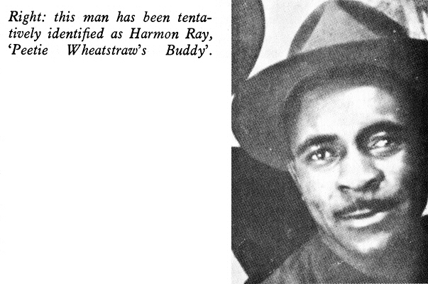 picture on front cover does not show Peetie Wheatstraw, but Herman / Harmon Ray ("Peetie Wheatstraw's Buddy")from Paul Garon: The Devil's Son-In-Law - The Story of Peetie Wheatstraw and his Songs.- Studio Vista, London 1971, p. 63:Herman / Harmon Ray