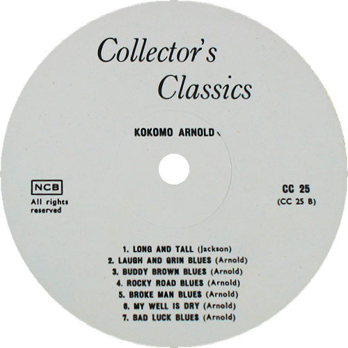 Kokomo Arnold relaxes in a Chicago clubThis photo in 1963 has been given by Kokomo Arnold to George Mitchell, who posted it at facebook; a bit photoshop cleaned up by Stefan WirzA cropped version of the photo has been published in Paul Oliver: Die Story des Blues.- Hamburg 1978, p. 192;photographer's name not given Kokomo Arnold in his home, 4413 South Calumet Avenue in Chicago, IL, September 1959source: Les Génies du Blues, Volume 4.- Paris (Edition Atlas) 1993, p. 81;photographer: Jacques Demêtre Kokomo Arnold in his home in Chicago, September 1959source: Front cover of EMP Musique CD 59302; photographer: Jacques Demêtre Kokomo Arnold in his home (4413 South Calumet Avenue) in Chicago, IL, September 1959source of photo on the left: Philippe Bas-Rabérin (ed.): Blues - Les Incontournables.- Paris (Éditions Filipacchi) 1994, p. 13source of photo on the right: Jacques Demêtre & Marcel Chauvard: Voyage au Pays du Blues.- Levallois-Perret (CLARB-Soul Bag) 1994, p. 146photographer: Jacques Demêtre Kokomo Arnold and Jacques Demêtre in Arnold's home (4413 South Calumet Avenue) in Chicago, IL, September 1959source: Steve Cushing: Pioneers of the Blues Revival.- Urbana, Chicago, and Springfield (University of Illinois Press) 2014, p. 249photographer: Jacques Demêtre / Soul Bag Archive Kokomo Arnold's headstone, put up by André Cochepin Mingarroat Burr Oak Cemetery (4400 W. 127th Street, Alsip, Illinois), section Acacia Lawn, lot 323, grave 5source: http://blindman.fr.yuku.com/topic/26871#.WAINKfmLSUkphotographer: Jocelyn Richez Leon Terjanian: "Kokomo Arnold"Blues Link No. 2 (Oct/Nov 1973), p. 27-30 The article above is 'published' here for private research only. While of historical interest, it may contain factual errors only revealed by later research. Be advised that more recent reference works should be consulted regarding factual points such as spelling of names, dates of birth, dates of recordings.