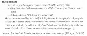1) Start of fifth verse: "Now if you dream about gambling, play 11, 17, and 61 If they don't give you your money, go buy you a Gatling gun."