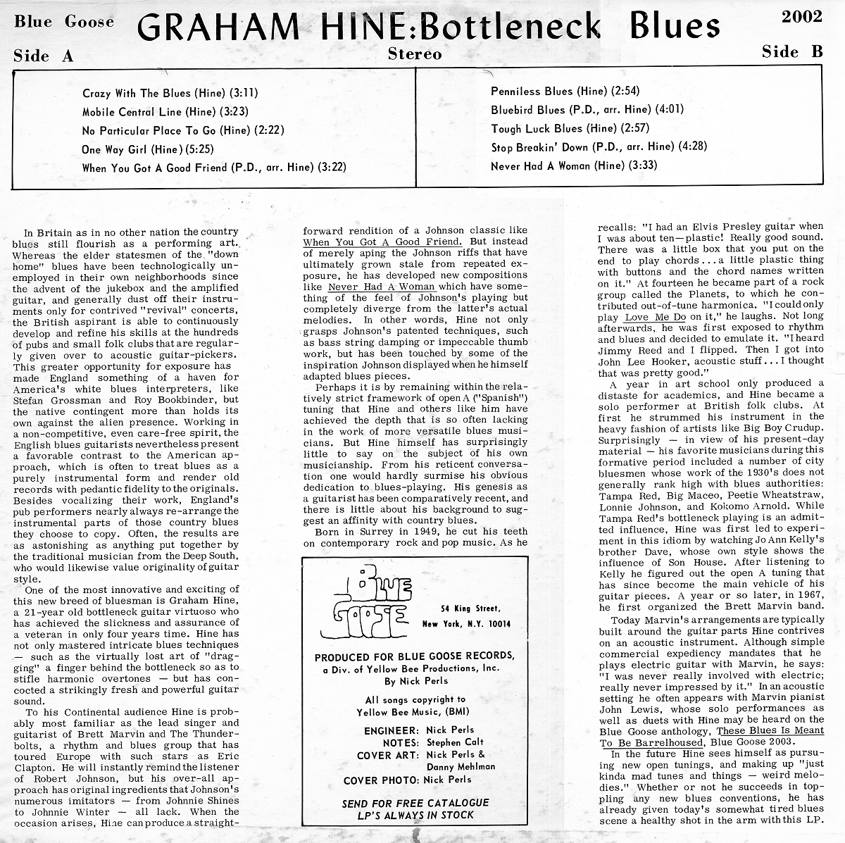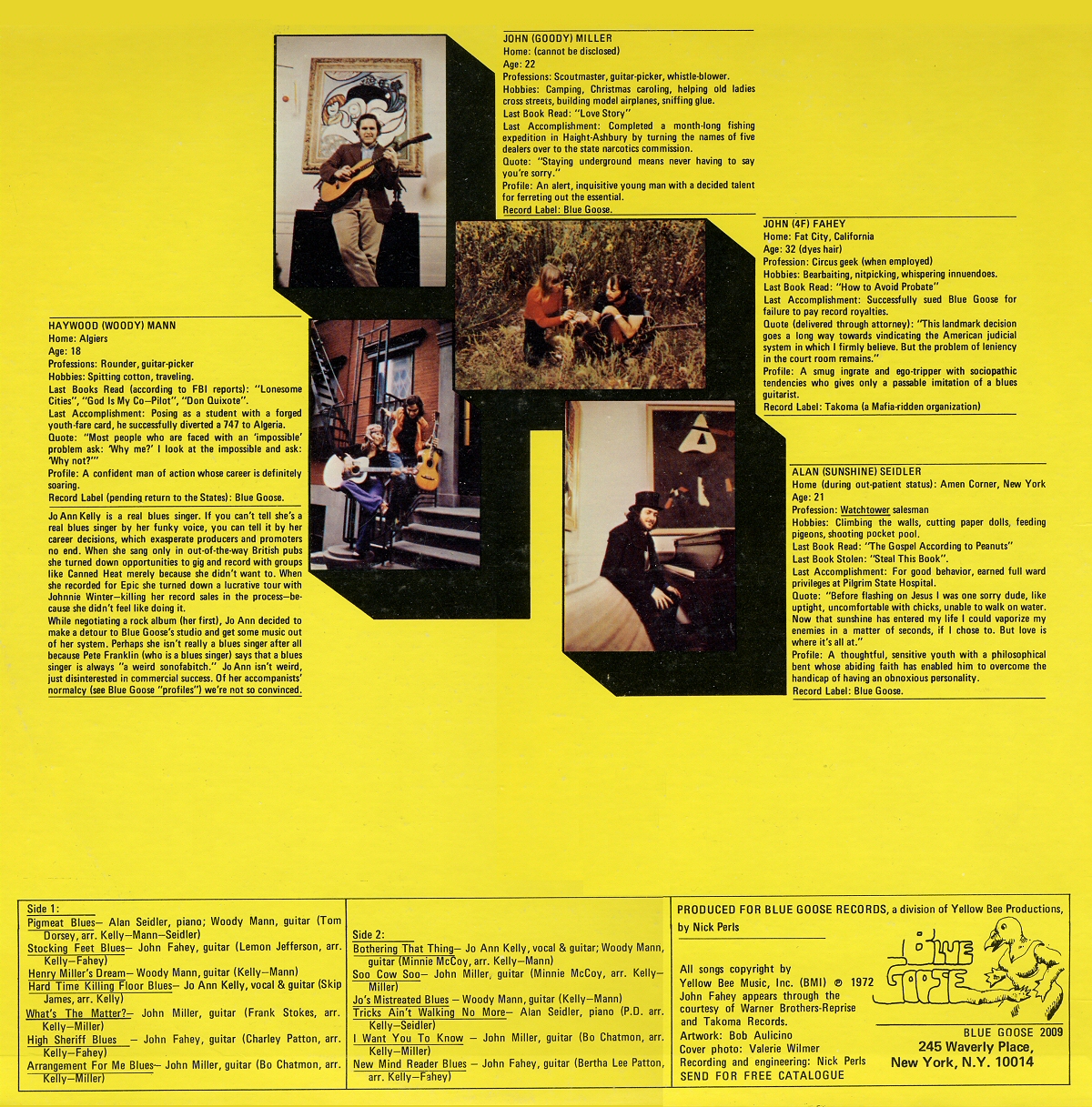 notes by Stephen Calt "Blue Goose, 245 Waverly Place, New York, N.Y. 10014" Blue Goose BG 2002 (US 197?)
