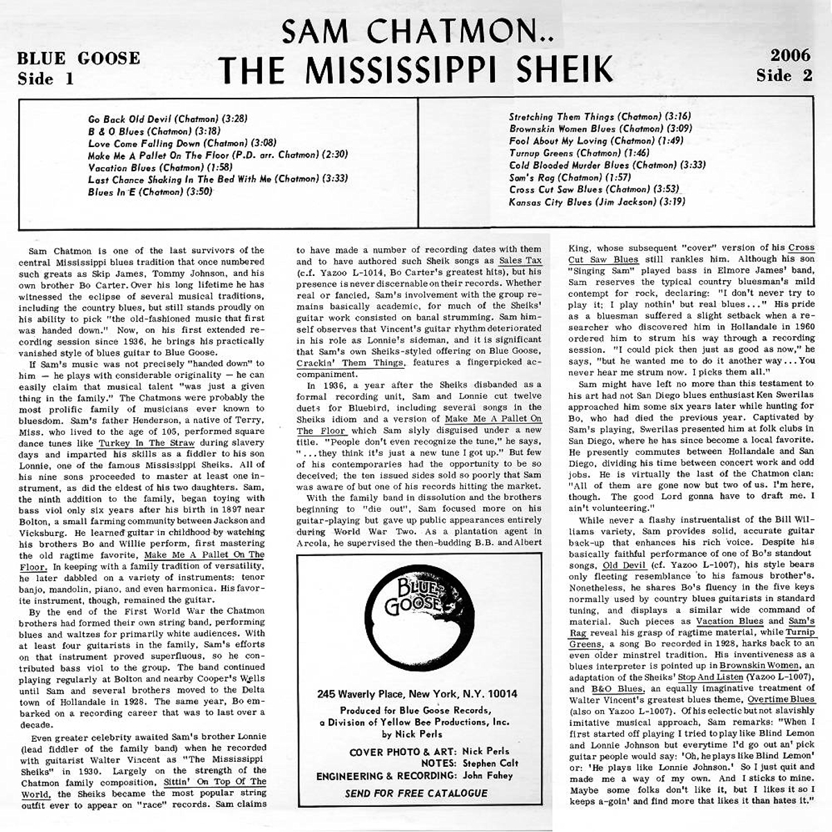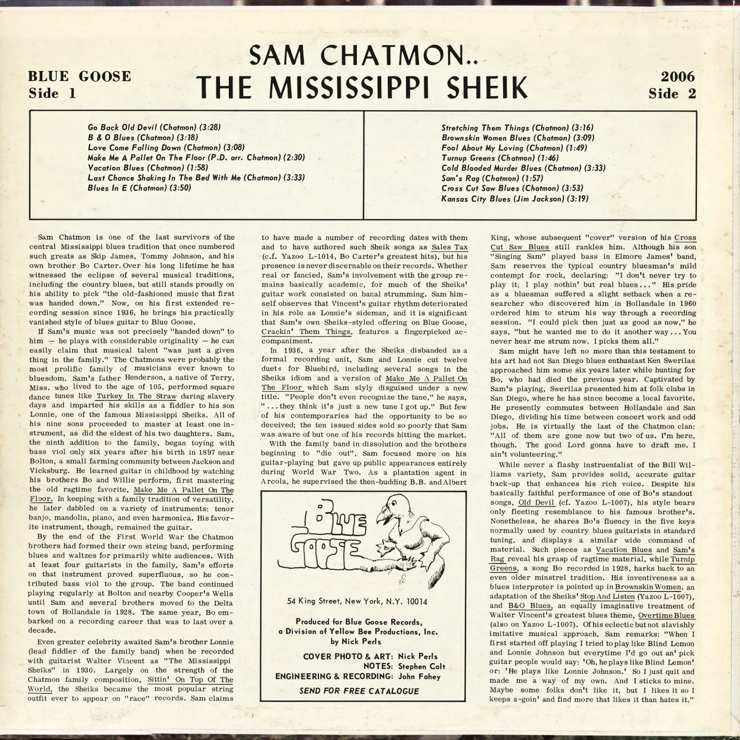 Blue Goose discographyJo Ann Kelly discographyAlan Seidler discographySam Chatmon discographyJohn Miller discographyYank Rachell discography
