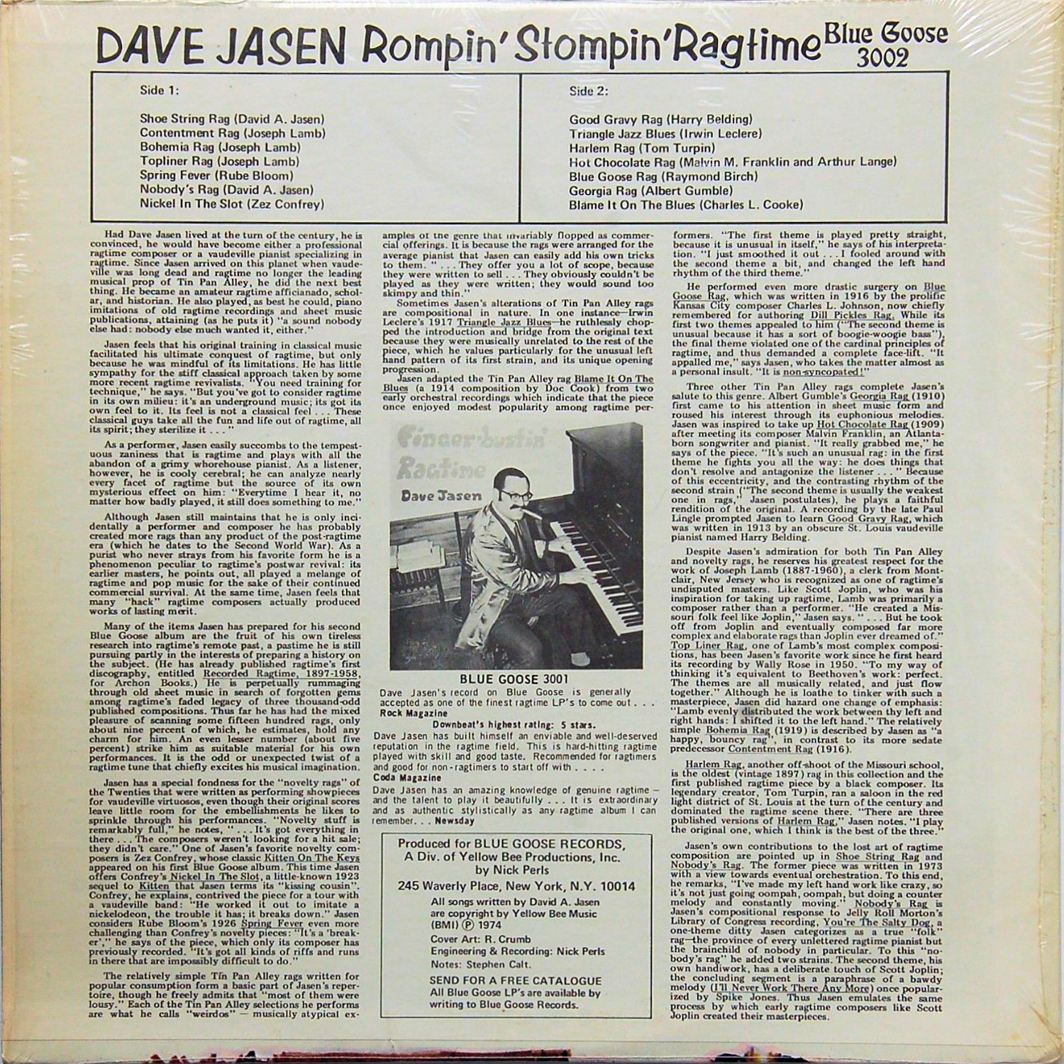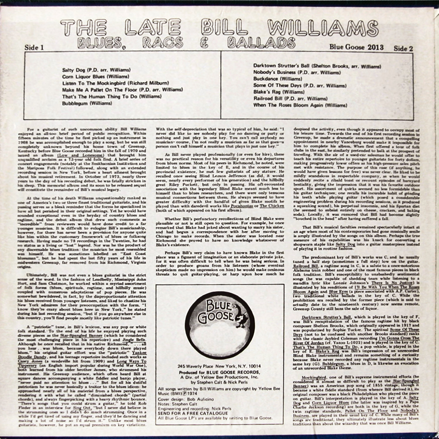 notes by Stephen Calt "Blue Goose, 245 Waverly Place, New York, N.Y. 10014" Blue Goose BG 2004 (US 1974)