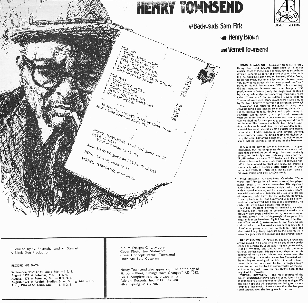 notes by Stephan Michaelson and Steve LaVere with assistance by Nick Perls and Michael Stewart Adelphi AD 1009 (US 1971)