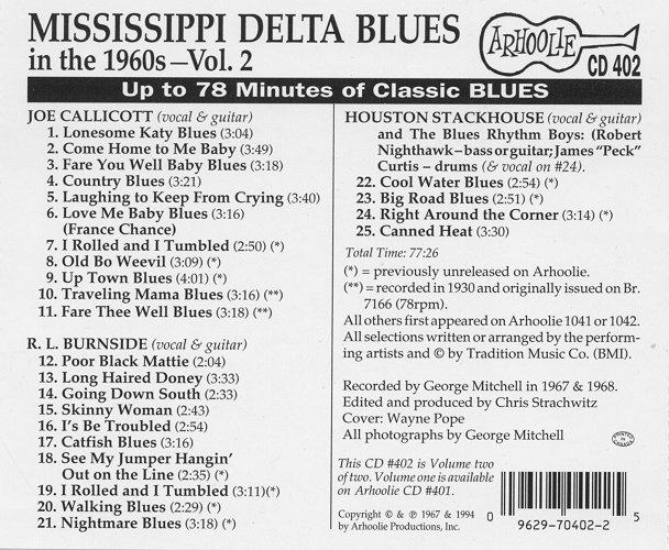 notes by George Mitchelland David Evans (1969)1993 updateby Chris Strachwitz Arhoolie CD 402