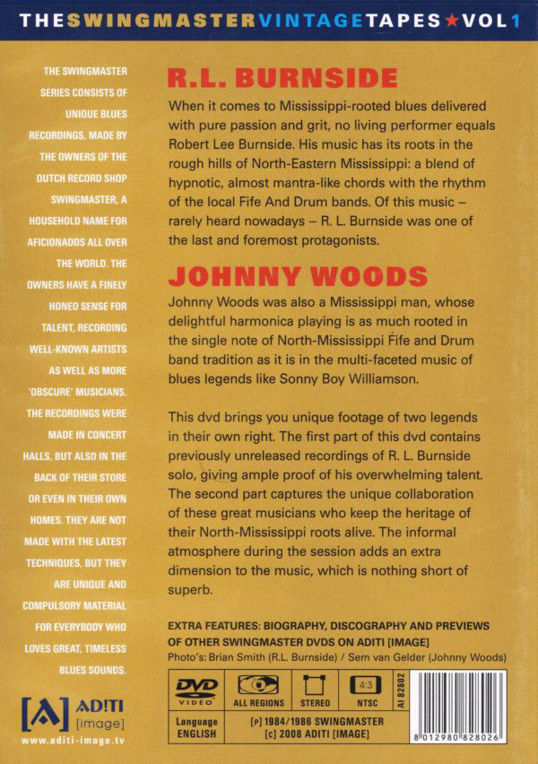 notes by Marcel Haerkens, Rien Wisse & Robert Slim = Sunny Moon DVD (NL 2009) "R.L. Burnside Live 1984/1986 with Johnny Woods" (The Swingmaster Vintage Tapes Vol. 1)