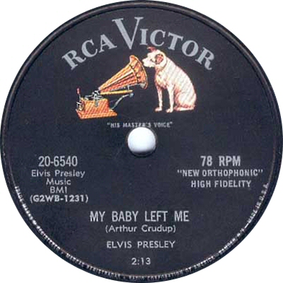 Elvis Presley "I Want You, I Need You, I Love You" (Mysels-Kosloff) / "My Baby Left Me" (Arthur Crudup) rec. January 30, 1956 in New York; prod. by Steve Sholes; rel. May 4, 1956