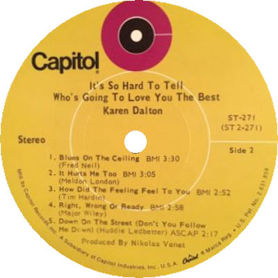 notes by Karen Dalton & Nikolas Venet Capitol ST-271 (US 1969)