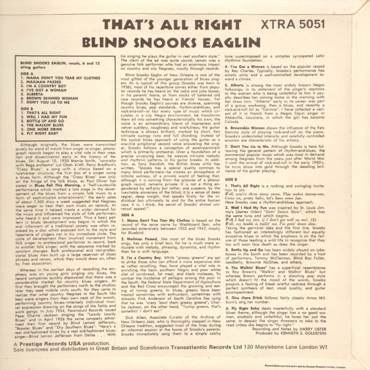 notes by Harry Oster = XTRA 5051 (UK 1968)