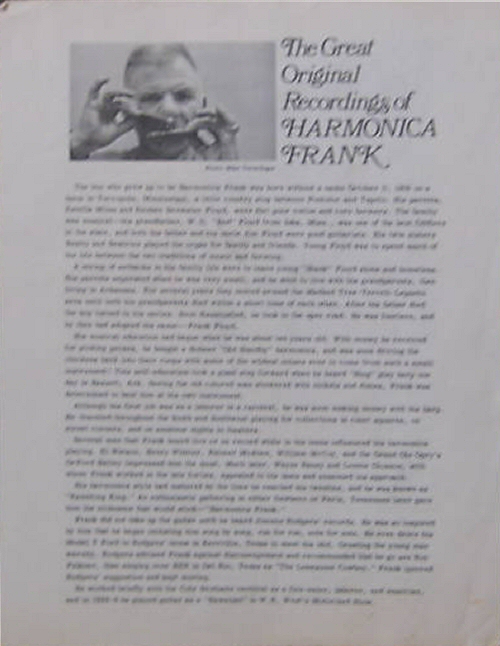 ... for more CD compilations containing single Harmonica Frank tracks(which I'm at the moment too lazy to "illustrate")please visit Pete Hoppula's comprehensive Harmonica Frank Floyd discographyat