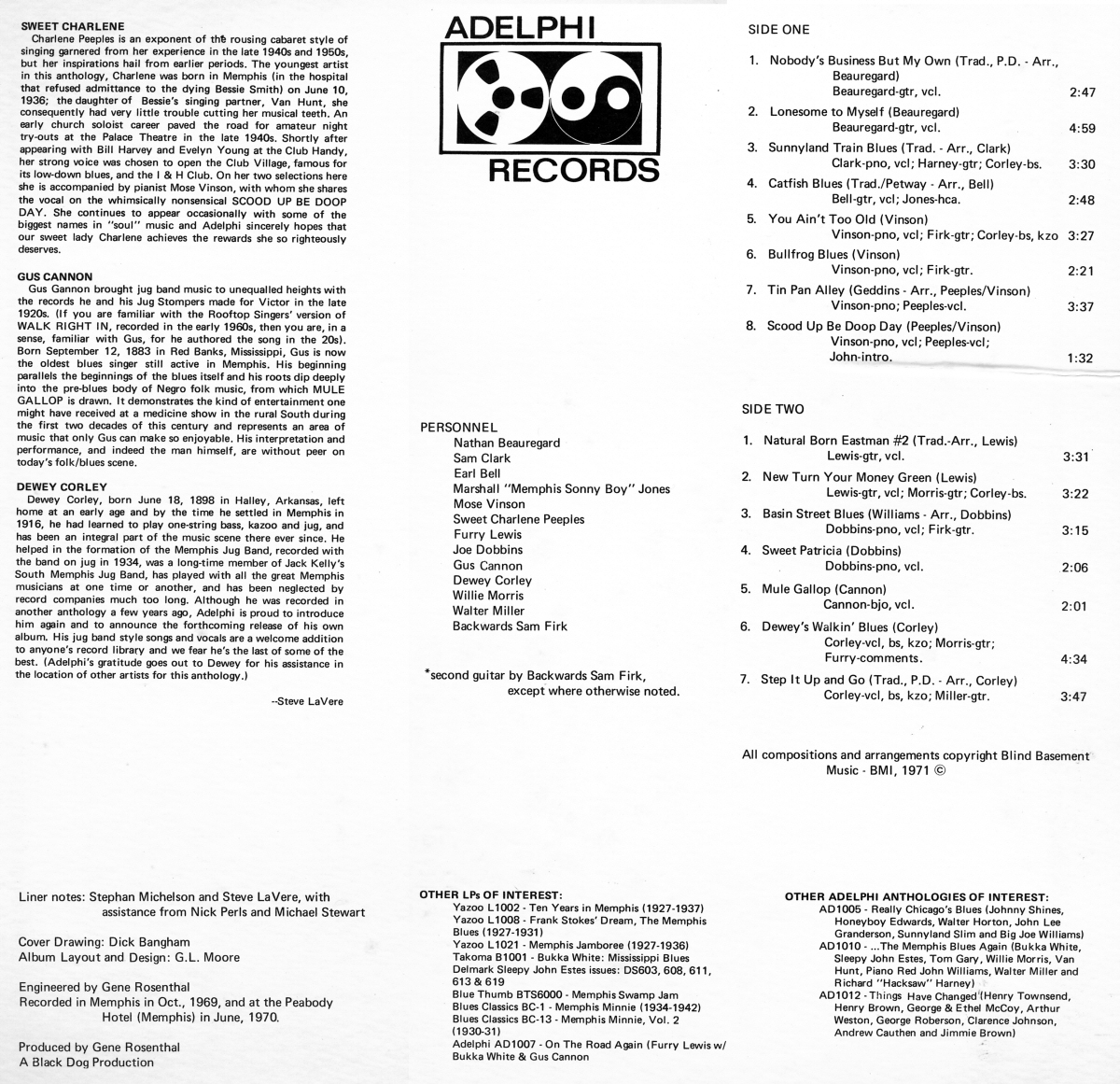 notes by Stephan Michaelson and Steve LaVere with assistance by Nick Perls and Michael Stewart Adelphi AD 1009 (US 1971)