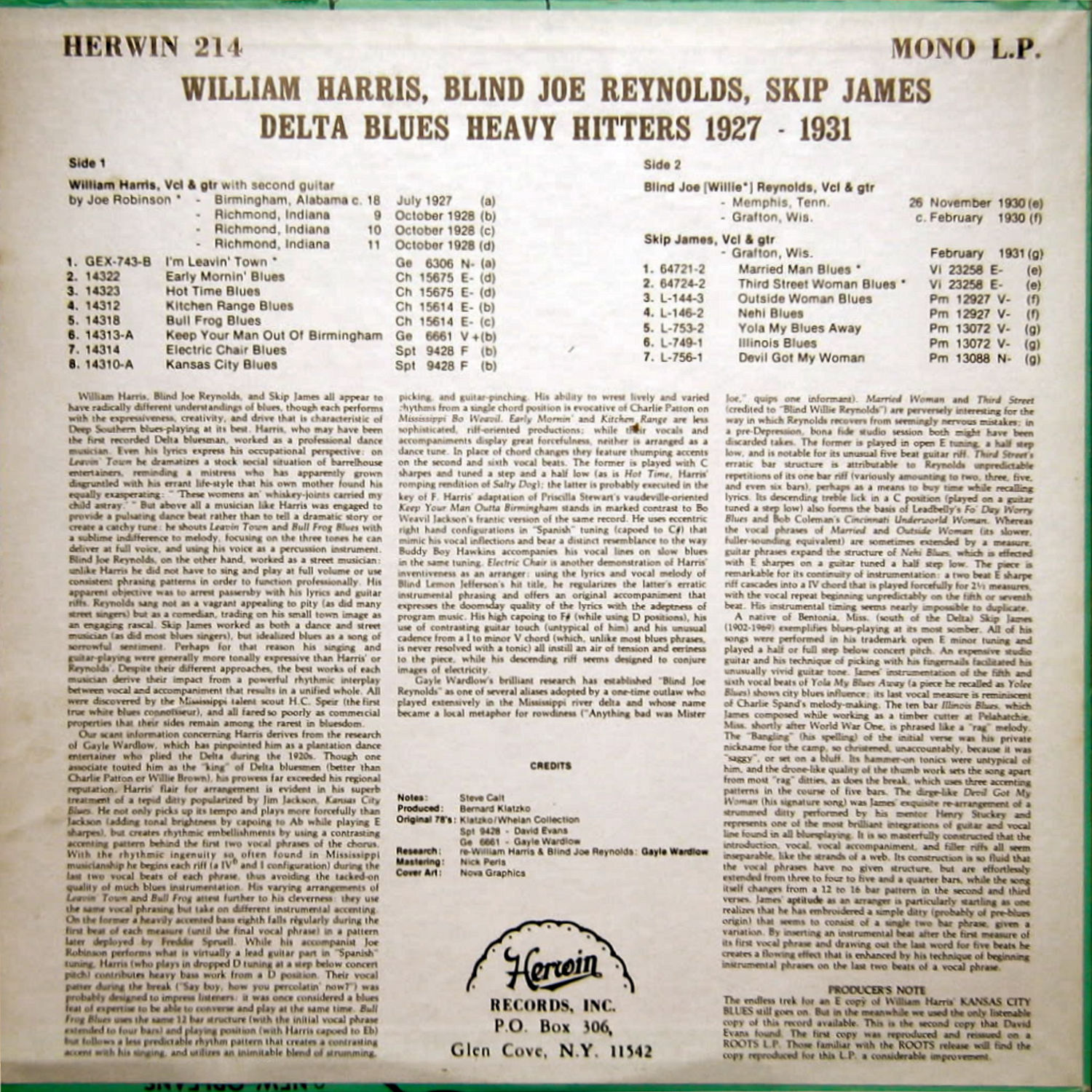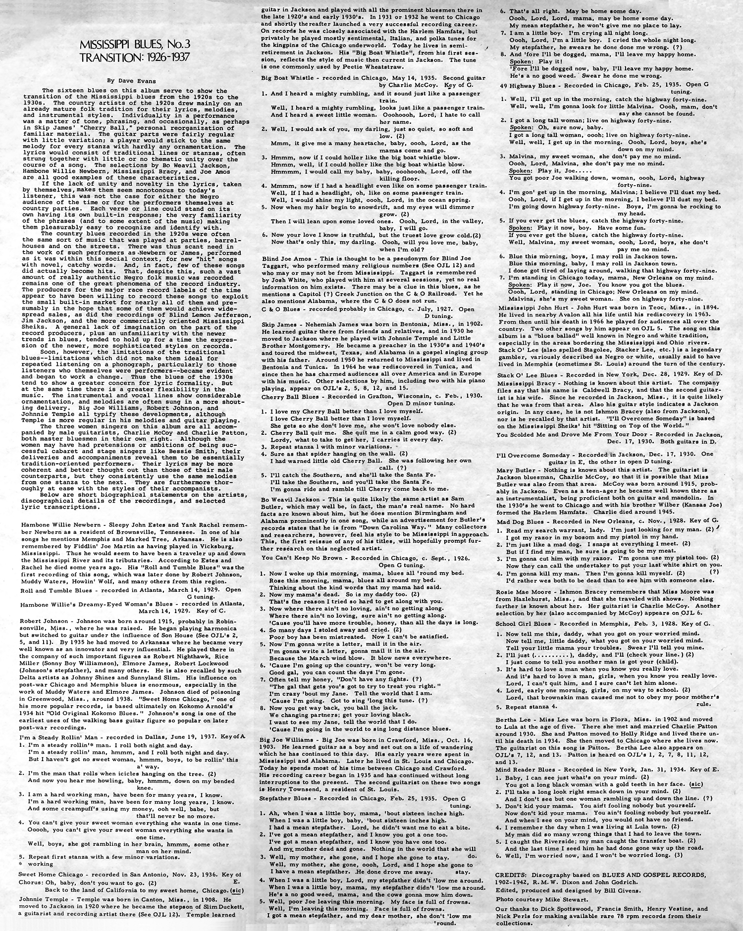 (Tribute to Willie Johnson, Skip James and J.B. Lenoir)