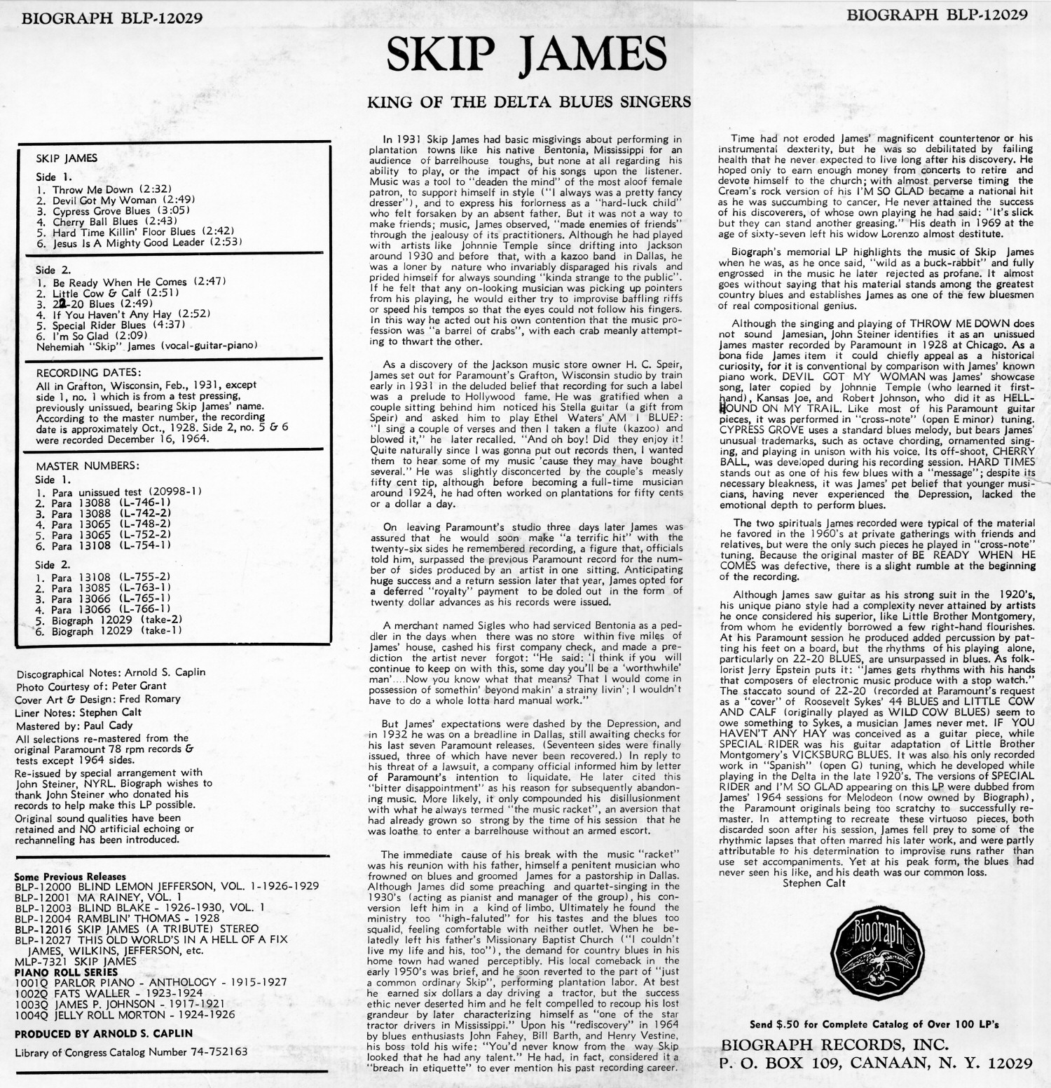 Stephen Calt: I'd Rather Be The Devil - Skip James + The Blues.- Capo Press, New York 1994; click to enlarge!