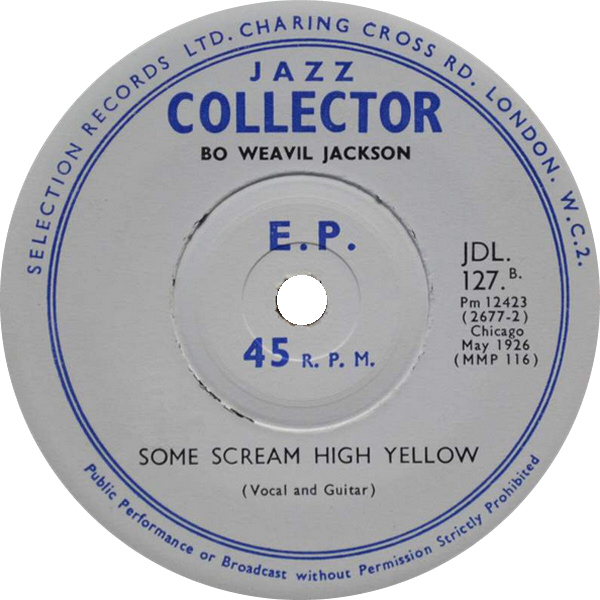 JEL series (7 inch 45 rpm EPs)"Jazz Selection. 100, Charing Cross Rd. London. W.C.2."later"Made in England, 39 Greenford Gardens, Greenford, Middx."