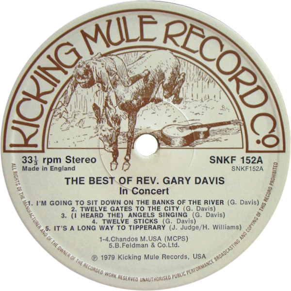 notes by Duck Baker = Sonet SNKF 152 (UK 1978) "The Best of Rev. Gary Davis - Live in Concert"