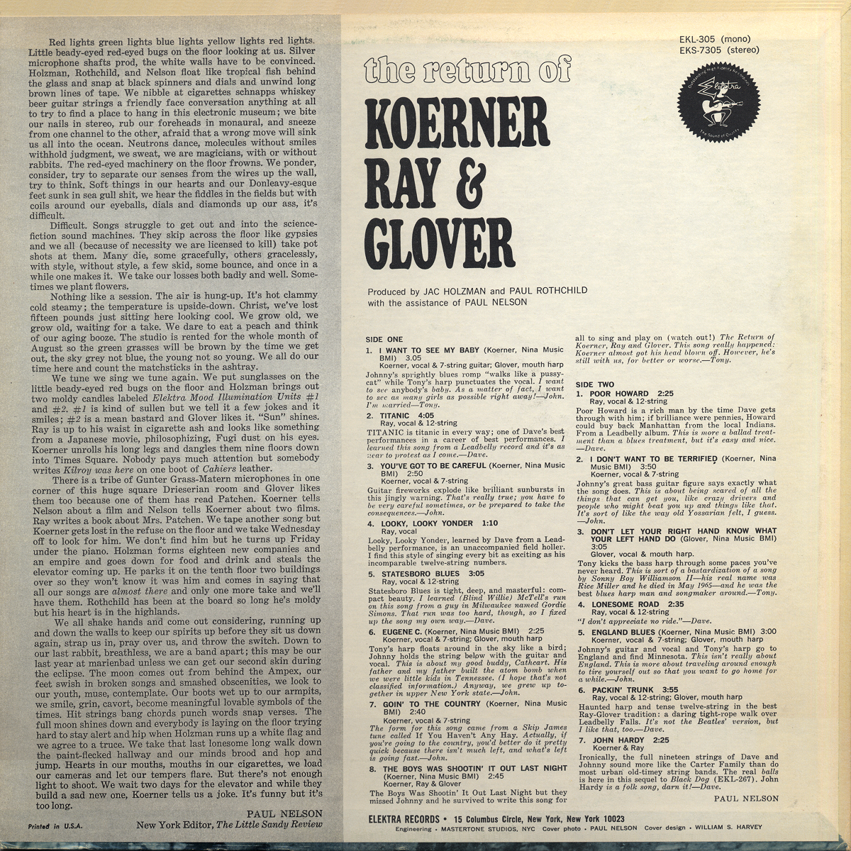 notes by Paul Nelson Elektra EKL-305 (mono) (US 10/1965)Elektra EKS-7305 (stereo)