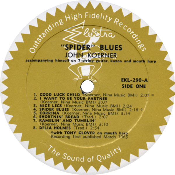 Elektra 60381-1-V 2701/84Crossroads(White Blues In The 1960s - The Jac Holzman Years ) Koerner, Ray & Glover - Linin' Track - Hangman - One Kin Favor - Banjo Thing - Jimmy Bell - Corrina - Fannin Street - Black Dog - Poor Howard - Black Betty - Broke-Down Engine - Rent Party Rag - Don't Let Your Right Hand Know What Your Left Hand Do - Can't Get My Rest At Night Elektra 60383-1-U 2804/84Dave Ray with Tony Glover - Mattie Mae - I Been Watching You 7 inch 45 rpmRay-Ver Productions R-1426 291/85DRemly Productions present...From The West Bank Rockoffs - Mystery Miller Beach - O'Malley's Dream Ray and Glover - Mattie May Nigel Eccleston - It Takes A 12-Pack To Make Me Cry Hounddogs - So Long Lazy Bill Kimmel Family Band - 2nd Shift/Blue Bossa The Perks - Jolly Me Willie & The Bees - Personal Meltdown The Swinging Combo - Gotta Go To Bed prod. by Dremly Productions Studio of the Stars, Minneapolis, MN REM RR8485 (US 1/1985) [Doug Remly's label] 3001/86Spider John Koerner: Nobody Knows The Trouble I've Been - Cotton-Eyed Joe - Sail Away Ladies - Acres Of Clams - Black Dog - Froggie Went A-Courtin' - The Old Chisholm Trail - The Leather-Winged Bat * - Red Apple Juice * - Worried Rambler - What's A Matter With The Mill ? - Shenandoah - The Roving Gambler - St. James Infirmary - Irene - Cotton-Eyed Joe (reprise) * Tony Glover, harmonica Red House RHR 12 311987Various Artists: Folked Again The Best Of Mountain Railroad, Vol. 1 Tom Paxton - Bad Old Days Dave Snaker Ray - Lonesome Road Betty Kaske - Cross Country Waltz Bob Gibson - Box Of Candy Gibson and Camp - Jimmie Rogers Dick Pinney - Hacklebarney Free Hot Lunch - Treat Me Right Jim Kweskin - Side By Side Jim Post - Hot Summer Night Josh White Jr. - Wherefores And Whys Rod MacDonald - Every Living Thing Steve Young - Rock Salt Gamble Rogers - Skylake Campfire Girls / Kissing Is A Crime / Nails Steve Goodman - Chicago Bust Rag Mountain Railroad MR 52671 (US 1987) 3212/1987Legends In Their Spare Timelive at St. Anthony East - Kid Man Blues - Lawton, Oklahoma - If It Ain't Me - 19 Years Old - Black Nights - Kiddie-O - Just A Little Bit - Brownsville - Sad Hours - You Better Watch Yourself - Shake 'Em On Down - Full Moon rec. March 13, 20, and 27 at St. Anthony East, Minneapolis, MN by Stefan Kren; live to two-track, no over-dubs Treehouse Records TR 005 (US 12/1987) 331989All-Ears Review, Volume 7: Still Amazing After All These Years John Koerner - I Ain't Blue ROM Records ROM 21007 341/1990Ramblin' Jack Elliott, Spider John Koerner & U. Utah Phillips: Legends Of Folk live from the World Theater Spider John Koerner - Runnin', Jumpin', Standin' Still - Creepy John - I Ain't Blue - Good Time Charlie - Danville Girl - Everybody's Going For The Money other tracks by Ramblin' Jack Elliott and Utah Phillips Red House RHR CD 31 (US 1/1990) 358/1990Dave Ray and Tony Glover: Ashes In My Whiskey - Uncertain Blues (Gillum) - Stuff You Sell (Davis) - If You Haven't Any Hay - Staring At The Ceiling (Ray) - In the Jailhouse Now (Traditional) - Devil Got My Woman (James) - HIV Blues (Glover) - Mean Old Lonesome Train (Hicks/West) - I'm Through With Love (McCoy) - Gravel Road (Rachell) - Elegy #2 (Glover) - Ashes in My Whiskey (Davis) - Catfish Blues (Petway) - I Been Watching You (Glover) - Mattie Mae (Ray/Warren) Rough Trade RUS-80 361991Folk Song America, Vol. 3:A 20th Century Revival John Koerner - Duncan and Brady Smithsonian Folkways Sony CD 0463 (US 1991) 373/1992Spider John Koerner: raised by humans - Prelude - Summer of '88 (Koerner) - Young Man Who Wouldn't Hoe Corn (Traditional) - Water Is Wide (Traditional) - Titanic (Traditional) - Boll Weevil (Traditional) - Farmer's Curst Wife (Traditional) - Santy Anno (Traditional) - More Pretty Women Than One (Guthrie/Koerner) - Midnight Special (Leadbelly) - Fox (Traditional) - Old Smoky (Traditional) - Everybody's Going for the Money (Koerner) - Ezekiel (Traditional) - Poem (Koerner) Red House CD RHR 44 (US 3/1992) 388/1992Troubadours of the Folk Era, Volume Three: The Groups Koener, Ray & Glover - Linin' Track Rhino CD R270264 (US 8/1992) 3912/1992It's Finally Christmas Ray and Glover - I'm Mad At The Fatman Tim/Kerr Records TK92CD025(= TK94CD025) 39a12/1992 Poison Idea - Santa Claus Is Back In Town Ray and Glover - I'm Mad At The Fatman 7 inch 45 rpm picture discTim/Kerr Records TK937045 401993Blues With A Feeling Recorded live at the Newport Folk Festival disc 1 / Vanguard VCD 73133-2: - Introduction by Dick Waterman (2:05) # Son House (1965) [Vanguard 3VCD193/95-2] - Preachin' Blues (3:54) [Vanguard VSD 79225] # - Death Letter (4:01) [Vanguard VSD 79225] # - Empire State Express (3:50) # [Vanguard VSD 25/6; 3VCD 208-10] Skip James (1964 blues workshop, introduction most likely by Bill Barth) [Vanguard 3VCD193/95-2] - Devil Got My Woman (4:52) @ youtube Bukka White [Vanguard 3VCD193/95-2; 3VCD 208-10] - Aberdeen Mississippi Blues (5:00) Robert Pete Williams - Levee Camp Blues (5:26) °° [Vanguard VRS 9180; 3VCD193/95-2] Mississippi Fred McDowell [Vanguard 3VCD193/95-2] - Louise Louise (3:05) Rev. Robert Wilkins - Don't Let Nobody Turn You 'round (3:48) @ youtube Rev. Pearly Brown & Mrs. Christine Brown - Keep Your Lamp Trimmed And Burning (3:06) @ youtube Fred and Annie Mae McDowell with Rev. Robert Wilkins - What Do You Think About Jesus (5:43) @ youtube Lightnin' Hopkins (July 23, 1965 morning "Blue Guitar" workshop) [ Vanguard VCD 79715-2] - The Woman I'm Loving, She's Taken My Appetite (Monkey Faced Woman) (3:22) @ youtube - Come On Baby (2:13) @ youtube - Baby Please Don't Go (2:46) [Vanguard 3VCD 208-10] @ youtube Mance Lipscomb [Vanguard 3VCD193/95-2] - Freddie (2:01) [Vanguard 3VCD 208-10] @ youtube - So Different Blues (2:33) @ youtube - God Moves On The Water (The Sinking Of The Titanic) (2:36) @ youtube disc 2 / Vanguard VCD 73134-2: Elizabeth Cotten - Freight Train (4:02) [Vanguard 3VCD 208-10] Mississippi John Hurt [Vanguard 3VCD193/95-2] - Here I Am Lord, Send Me (3:54) - Make Me A Pallet On T