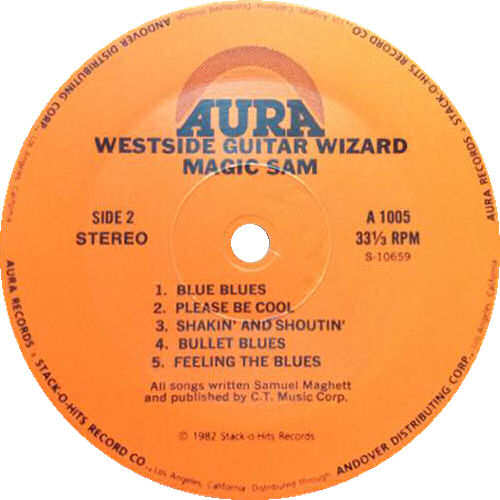 1969 AFBF ensemble (l to r): Mac Thompson, Earl Hooker, Clifton Chenier,Juke Boy Bonner, Cleveland Chenier, Magic Sam, Carey Bell,'Whistling' Alex Moore, John Jackson, Robert St. Judy Julien source: Blues Unlimited 130 (1978), p. 24; photographer: Chris Strachwitz 1969 AFBF ensemble (l to r) (standing): Earl Hooker, Cleveland Chenier, Magic Sam, Carey Bell,John Jackson, Robert St. Judy Julien, Willy Leiser (headlocked, almost invisible);(kneeling): Juke Boy Bonner, Clifton Chenier, Mac Thompson, 'Whistling' Alex Moore source: Back cover of Arhoolie 1048 "Alex Moore in Europe"; photographer: Chris Strachwitz 1981 Delmark Records press sheet for Delmark DL 645/646 Magic Sam's headstone at Restvale Cemetery in Worth, Illinoissource: http://www.deadbluesguys.com/dbgtour/maghett_samuel.htm