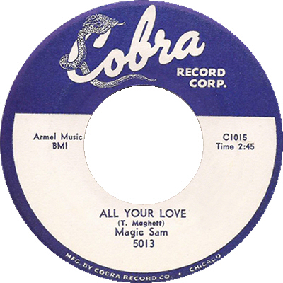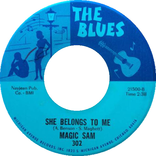 Magic Sam & Shakey Jake at Silvio's, Chicago, IL, 1966source: Block 72 (oct/nov/dec '89), p. 30; photographer: Georges Adins Magic Sam 1968source: Front cover of Flyright FLY 590photographer: John Harmer 1969 AFBF ensemble (l to r): Mac Thompson, Earl Hooker, Clifton Chenier,Juke Boy Bonner, Cleveland Chenier, Magic Sam, Carey Bell,'Whistling' Alex Moore, John Jackson, Robert St. Judy Julien source: Blues Unlimited 130 (1978), p. 24; photographer: Chris Strachwitz 1969 AFBF ensemble (l to r) (standing): Earl Hooker, Cleveland Chenier, Magic Sam, Carey Bell,John Jackson, Robert St. Judy Julien, Willy Leiser (headlocked, almost invisible);(kneeling): Juke Boy Bonner, Clifton Chenier, Mac Thompson, 'Whistling' Alex Moore source: Back cover of Arhoolie 1048 "Alex Moore in Europe"; photographer: Chris Strachwitz 1981 Delmark Records press sheet for Delmark DL 645/646 Magic Sam's headstone at Restvale Cemetery in Worth, Illinoissource: http://www.deadbluesguys.com/dbgtour/maghett_samuel.htm