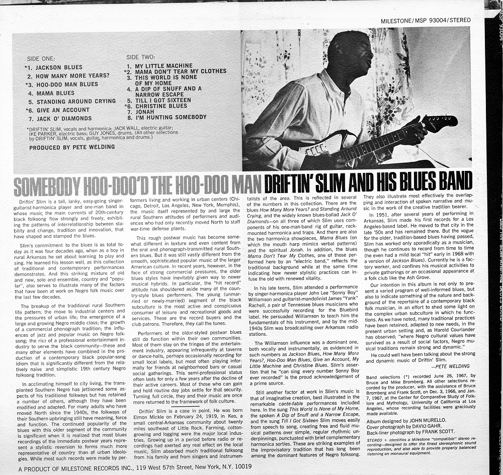 notes by Pete Welding= Milestone MLP 3001 (US 1966)