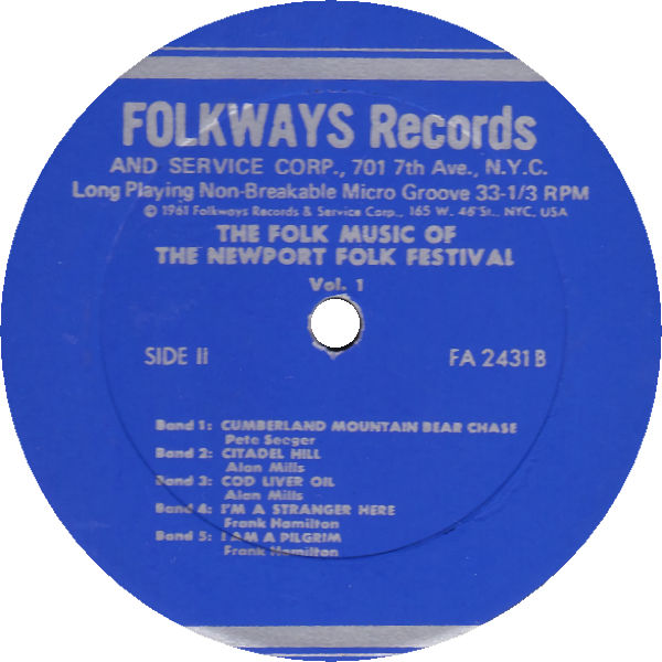 notes by Irwin Silber "Folkways Records and Service Corp., 117 W. 46 St., N.Y.C." (operative from founding in 1948 to very early 1960s) "Folkways Records and Service Corp., 121 W. 47 St., N.Y.C." (operative in early 1960s) "Folkways Records and Service Corp., 165 W 46th St., N.Y.C." (operative in early to mid 1960s) "Folkways Records and Service Corp., 701 7th Ave., N.Y.C." (operative from mid 1960s to mid 1970s) "Folkways Records and Service Corp., 17 W. 60th St., N.Y.C., USA 10023" (operative in mid 1970s) "Folkways Records and Service Corp., 43 W. 61th St., N.Y.C., USA 10023" (operative from mid 1970s to early 1980s) "Folkways Records and Service Corp., 632 Broadway, New York, NYC, USA" (operative from early to mid 1980s up to Smithsonian acquisition) Folkways FA 2432 (US 1961)