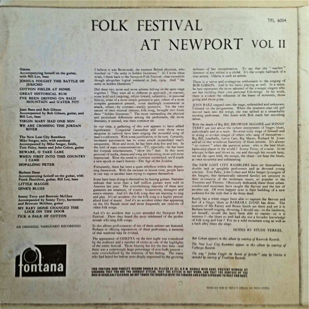 notes by Stacey Williams = Amadeo AVRS-9129 (stereo) (Austria 1963?) "Folk Festival at Newport Vol. 2"