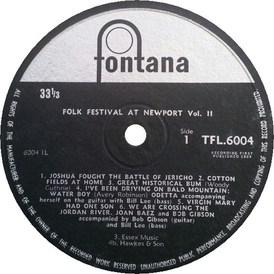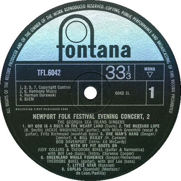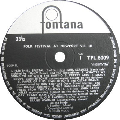 notes by Ralph Rinzler = Fontana TFL 6049 (UK)