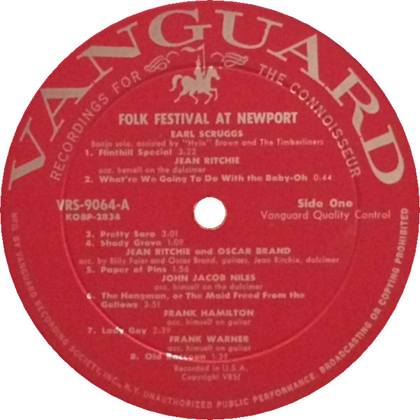 notes by Ralph Rinzler Vanguard VRS 9182 (mono) (US 1965)