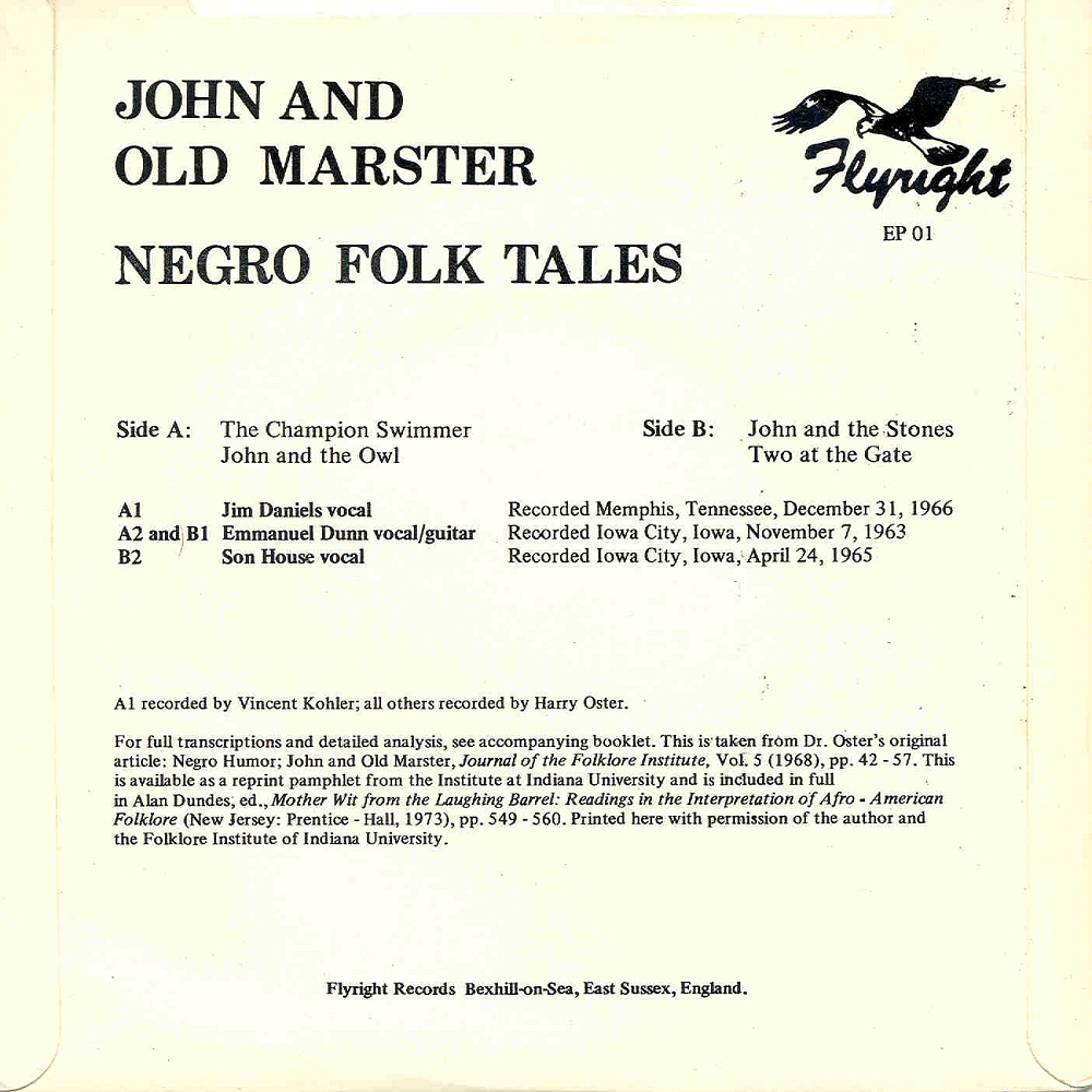 accompanying booklet text taken from: Harry Oster: "Negro Humor: John and Old Marster." Journal of the Folklore Institute 5 (1968), pp. 42-57