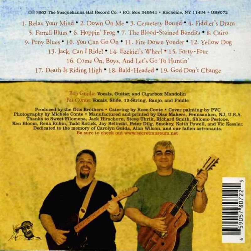 guest musicians are Robert Crumb (Cheap Suit Serenaders), Dom Flemons (Carolina Chocolate Drops), # Pat Conte, * Joe Bellulovich (Otis Brothers), Jackson Lynch (Down Hill Strugglers) and Ernesto Gomez (Brotherhood Of The Jug Band)