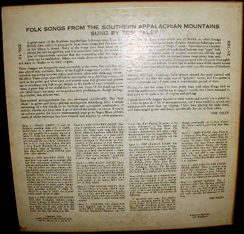10 inch LPnotes by Tom Paleyadditional lyrics booklet Elektra EKL 12