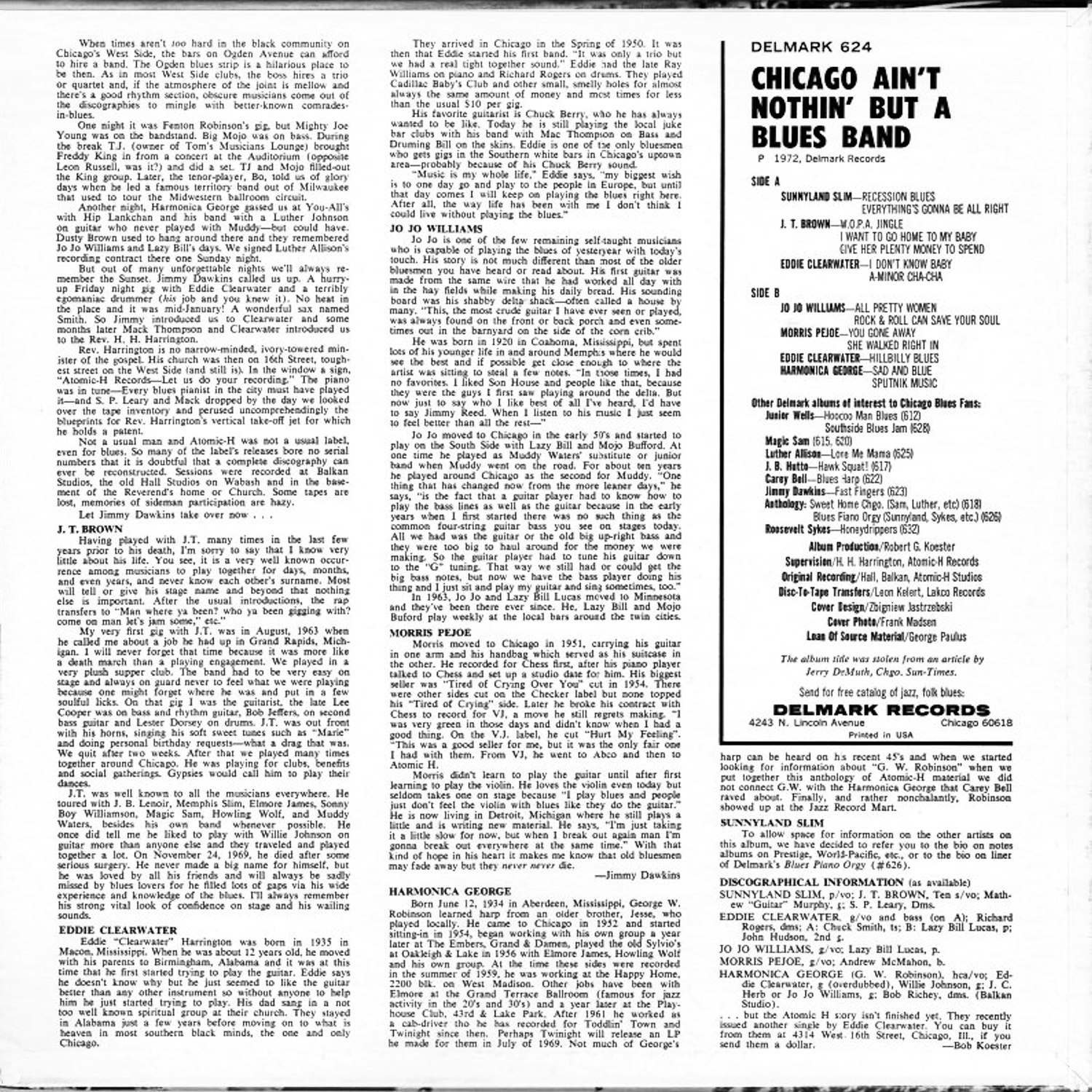 notes by Jimmy Dawkins and Bob Koester Delmark DL 624 (US 1972)