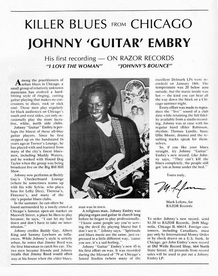 Razor Records ad in Living Blues #42 (1979), p. 43photographer's name of John Embry photo not given