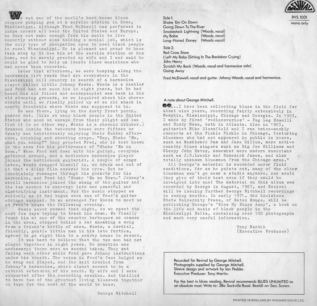 notes by George Mitchelland Tony Martin Revival RVS 1001 (UK 1971)