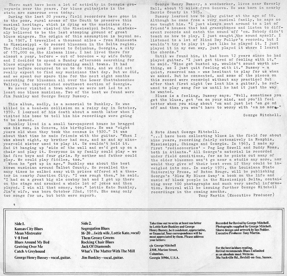 notes by George Mitchell (=) Rounder 2008 "Georgia Blues"
