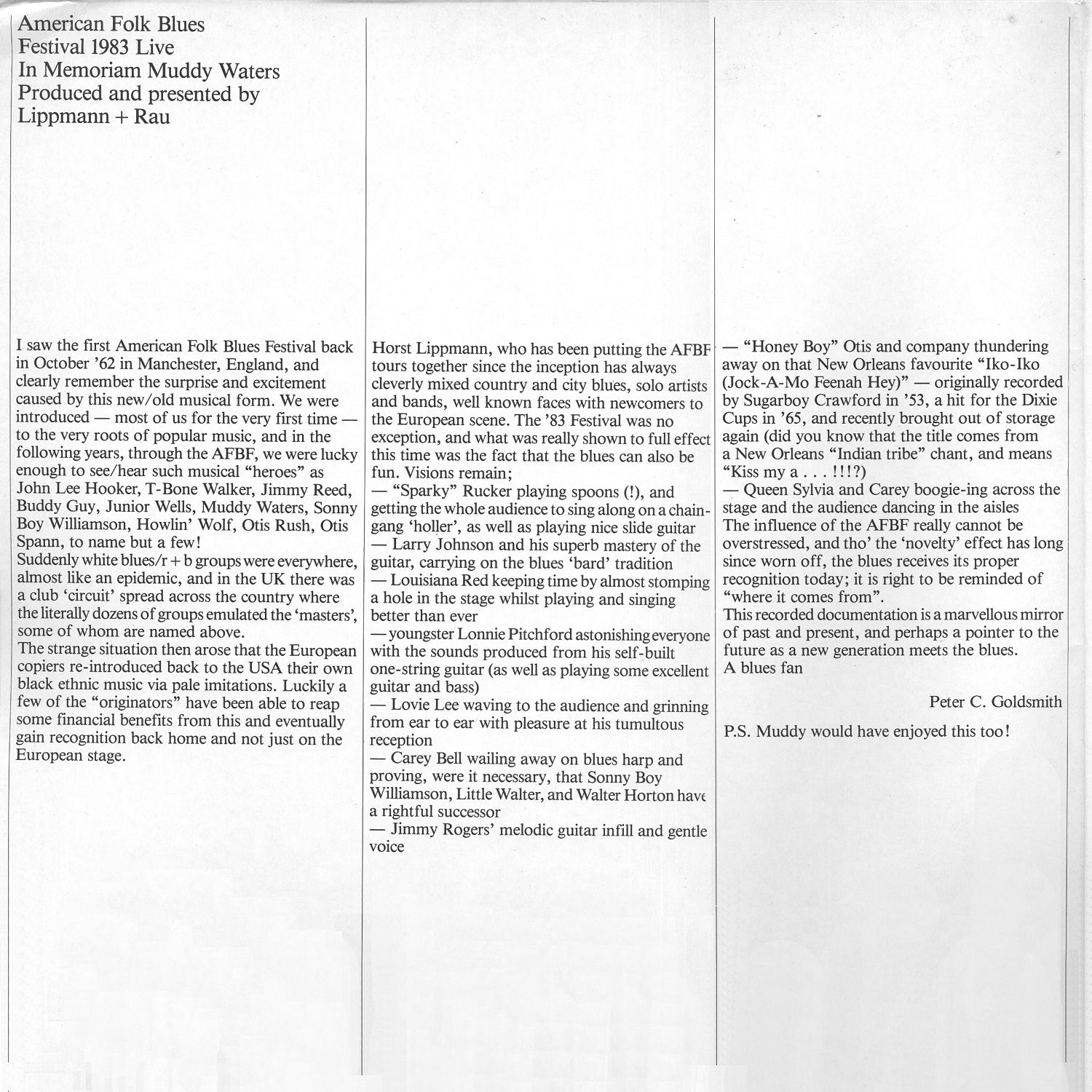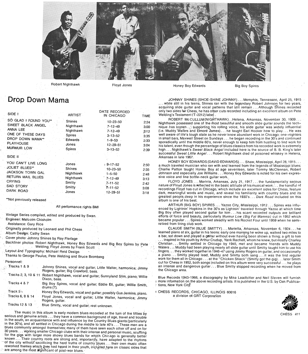 notes by Pete Welding ("All Star Blues Sessions") Murray Brothers MB 1006 (US 1983)