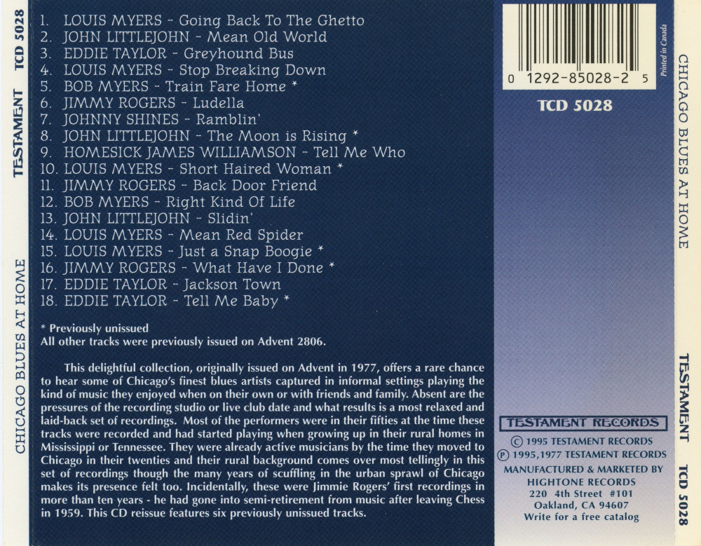 Advent Records discographyTestament Records discographyJohn Littlejohn discographyJohnny Shines discographyHomesick James discography