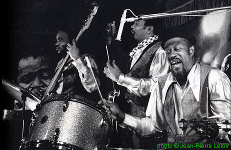 1981 AFBF ensemble; Zürich, Switzerland, March 13, 1981(l to r): Odie Payne, John Cephas, Sunnyland Slim, Margie Evans, Phil Wiggins,Bob Stroger, Carey Bell, Lurrie Bell, Louisiana Red, Hubert Sumlinsource: Blues Forum 3 (1981), p. 20; photographer: George TannerOdie Paynesource: Les Génies du Blues, Volume 2.- Paris (Editions Atlas) 1992, p. 161photographer: Jean-Pierre Leloir