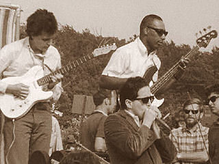 Muddy Waters Band at Smitty's Corner, Chicago, 1959l to r: Muddy Waters (just visible), Otis Spann, Francis Clay, Andrew Stephens, Little Walter & Pat Haresource: Juke Blues #23 (Summer 1991), p.11; photographer: Jacques Demêtre