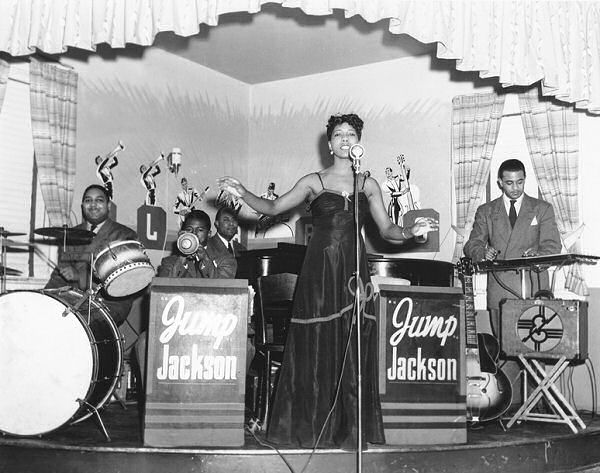 Howlin' Wolf and band at the 708 Club, Chicago in December 1957l to r: Abb Locke (half-hidden), Howlin' Wolf, Alfred Elkins (in background), Hosea Lee Kennard (at piano) & Tampa Redsource: James Segrest & Mark Hoffman: Moanin' at Midnight - The Life and Times of Howlin' Wolf.- New York (Pantheon Books) 2004,unpaginated photo pages between pp. 151 and 152; photographer: Yannick Bruynoghe