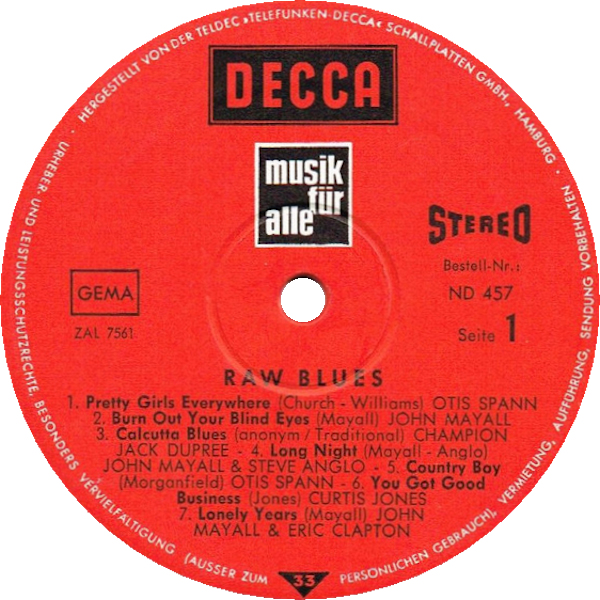 Philips/Phonogram SFL-7385 track sequence: Muddy Waters - Five Long Years Willie Dixon - Sittin' And Cryin' The Blues Willie Dixon - Crazy For My Baby Matthew Murphy - Matt's Guitar Boogie Sonny Boy Williamson - I Don't Know Sonny Boy Williamson - I'm Trying To Make London My Home Lightnin' Hopkins - Ain't It A Pity Lightnin' Hopkins - Baby, Please Don't Go Sunnyland Slim - Everytime I Get The Drinking Hubert Sumlin - No Title Boogie Howlin Wolf - Dust My Broom