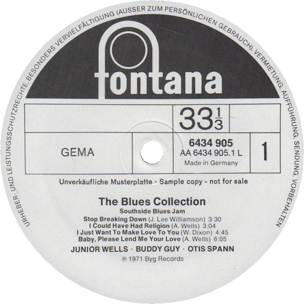 notes by Joel Selvin Bluesway BLS 6063 (US 1973, promo) has dissimilar (most likely false) track sequence written on back cover