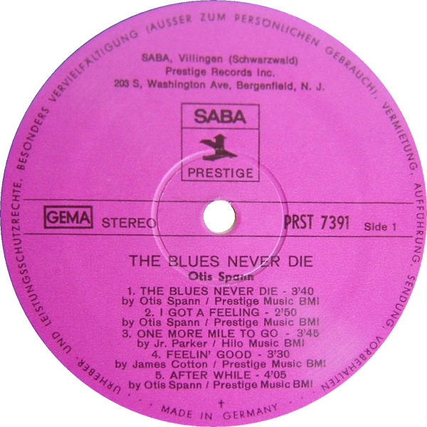 notes by Don DeMicheal = Barnaby Z 30246 (US 1972) "Otis Spann Is The Blues"