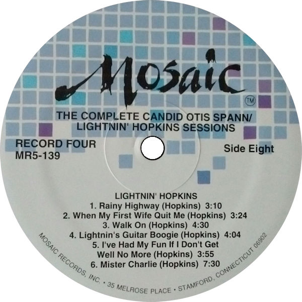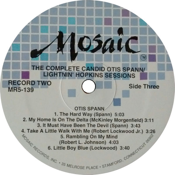 Python PLP-KM 4 track sequence: - Beat-Up Team - Take A Little Walk With Me * - The Hard Way - Great Northern Stomp (instr) - My Daily Wish (4:10) * - I Got Rambling On My Mind no. 2 * - Country Boy - Little Boy Blue * - Otis In The Dark (Spann piano solo) - Worried Life Blues CrossCut CCR 1003 track sequence: - The Hard Way - Take A Little Walk With Me * - Otis In The Dark (Spann piano solo) - Baby Child (tk 1) [previously unissued] - Little Boy Blue * - Country Boy - Beat-Up Team - My Daily Wish * - Great Northern Stomp (instr) - I Got Rambling On My Mind no. 2 * - Worried Life Blues - Instrumental Boogie rec. August 23, 1960 at Fine Recording Studios in New York, NY; Otis Spann, voc, p; Robert Lockwood, g, * voc; engineered by George Piros; prod. by Nat Hentoff Candid 8001 photography/design by Frank Gauna