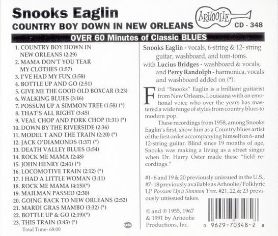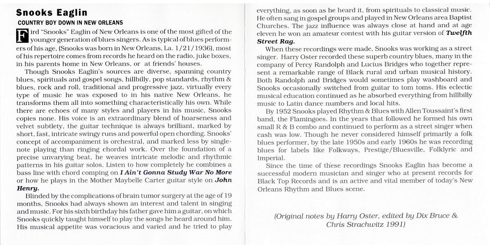 notes by Kenneth S. Goldstein Folkways FA 2476 (US 1959) "New Orleans Street Singer"