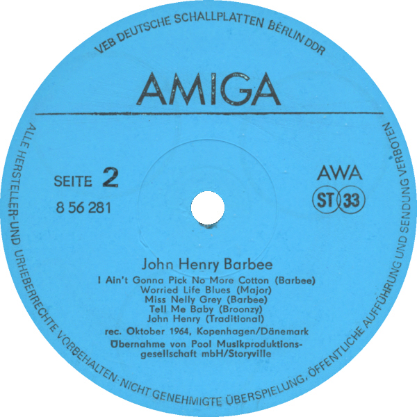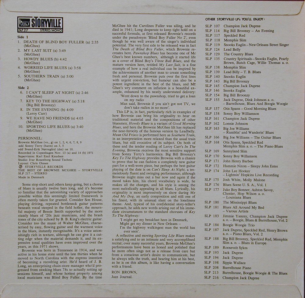 Storyville/Teldec 6.23703 tracks: - The Crawdad Song - I'm Goin' Down The Road - In The Evening - Diggin' My Potatoes - When Things Go Wrong - This Train - Black, Brown And White - Glory Of Love - I Gets The Blues When It Rains - Keep Your Hands Off Her - Louisiana Blues - Sixteen Tons